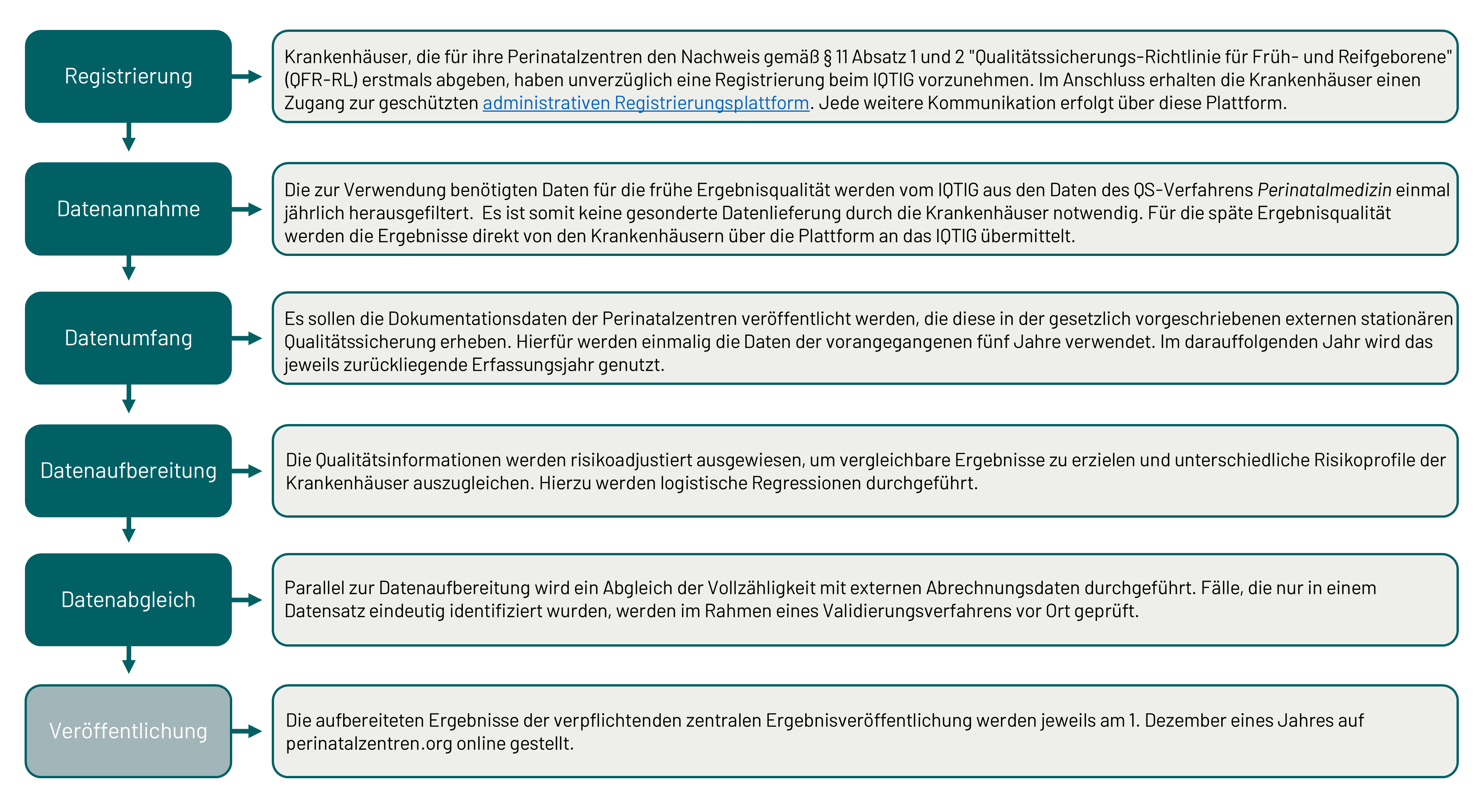 Abbildung 1: Schritte zur Ergebnisveröffentlichung auf www.perinatalzentren.org.